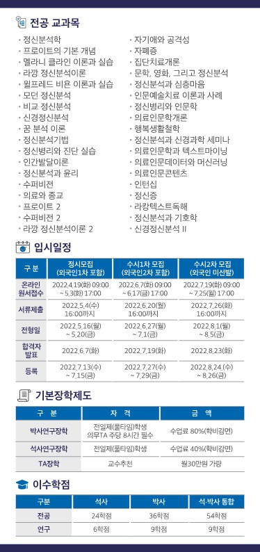 2022학년도 후기 일반대학원 디지털휴머니티융합학과 의료인문정신분석전공 신입생 모집