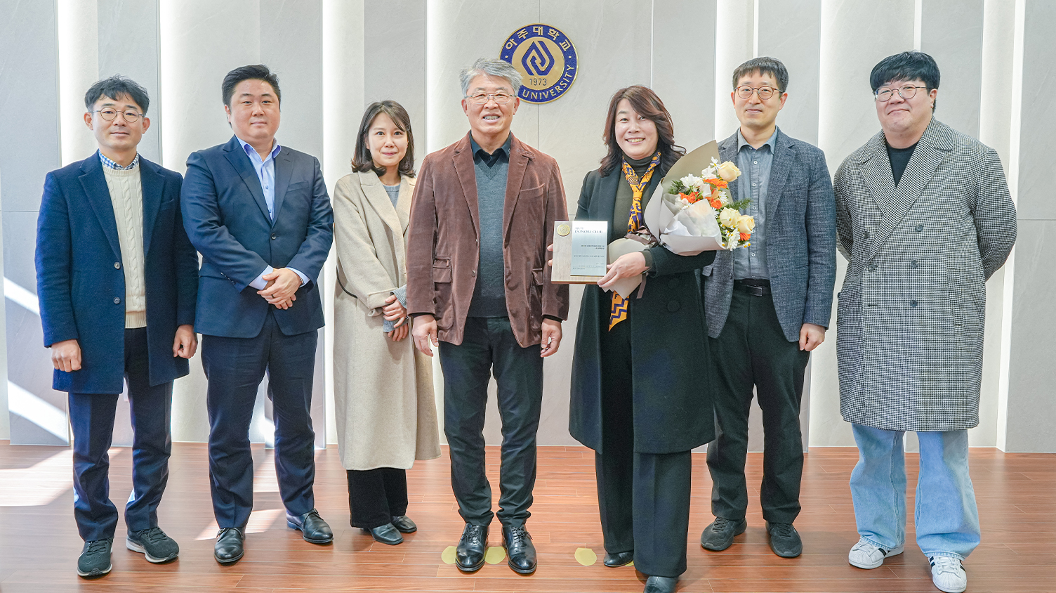 지난 29일 율곡관 총장실에서 열린 기부금 전달식 행사에는 이인길 ㈜대룡공업 대표, 왕지남 산업공학과 명예교수, 박광온 공공정책대학원 초빙교수가 참석했다. 학교에서는 감사 인사를 전하기 위해 최기주 총장과 조경숙 대학발전본부장, 최진영 공과대학장이 자리했다. 최기주 총장이 아주 가족을 대표해 감사 인사를 전하고 감사패와 예우품을 전달했다.