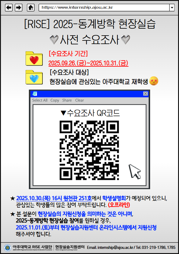 [RISE] 2025-동계방학 현장실습 사전 수요조사 진행 안내(2025.09.26.(금)~2025.10.31.(금))