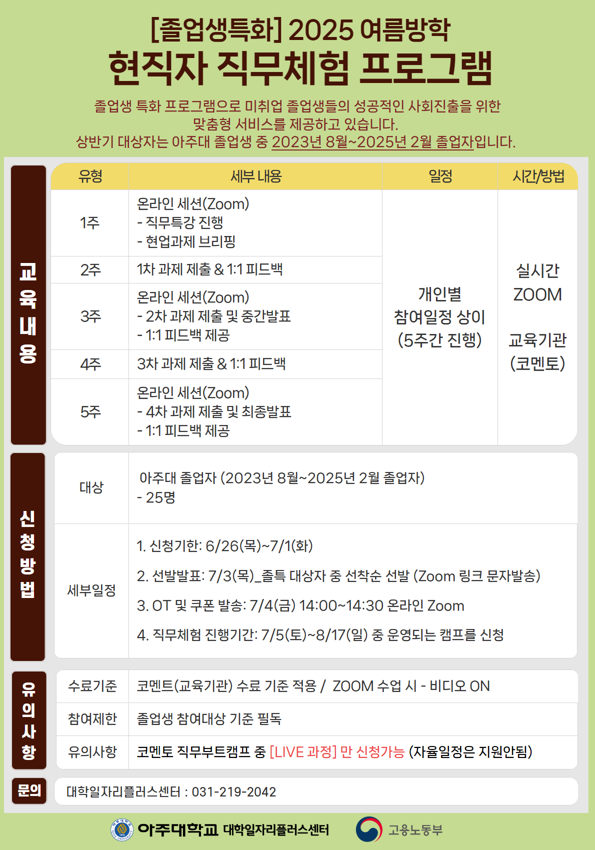 | 24631 | 취업 | 대학일자리플러스센터 | 2025-06-26 | ||