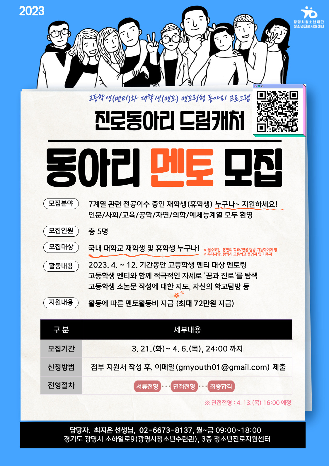 [봉사활동] 광명시 청소년 수련관 진로동아리 멘토 모집