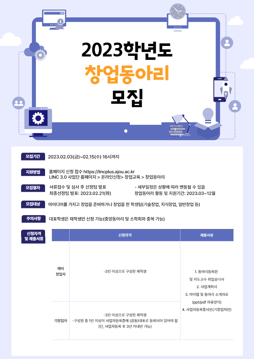 [LINC 3.0] 2023학년도 창업동아리 모집 안내(~2/15 16시까지)