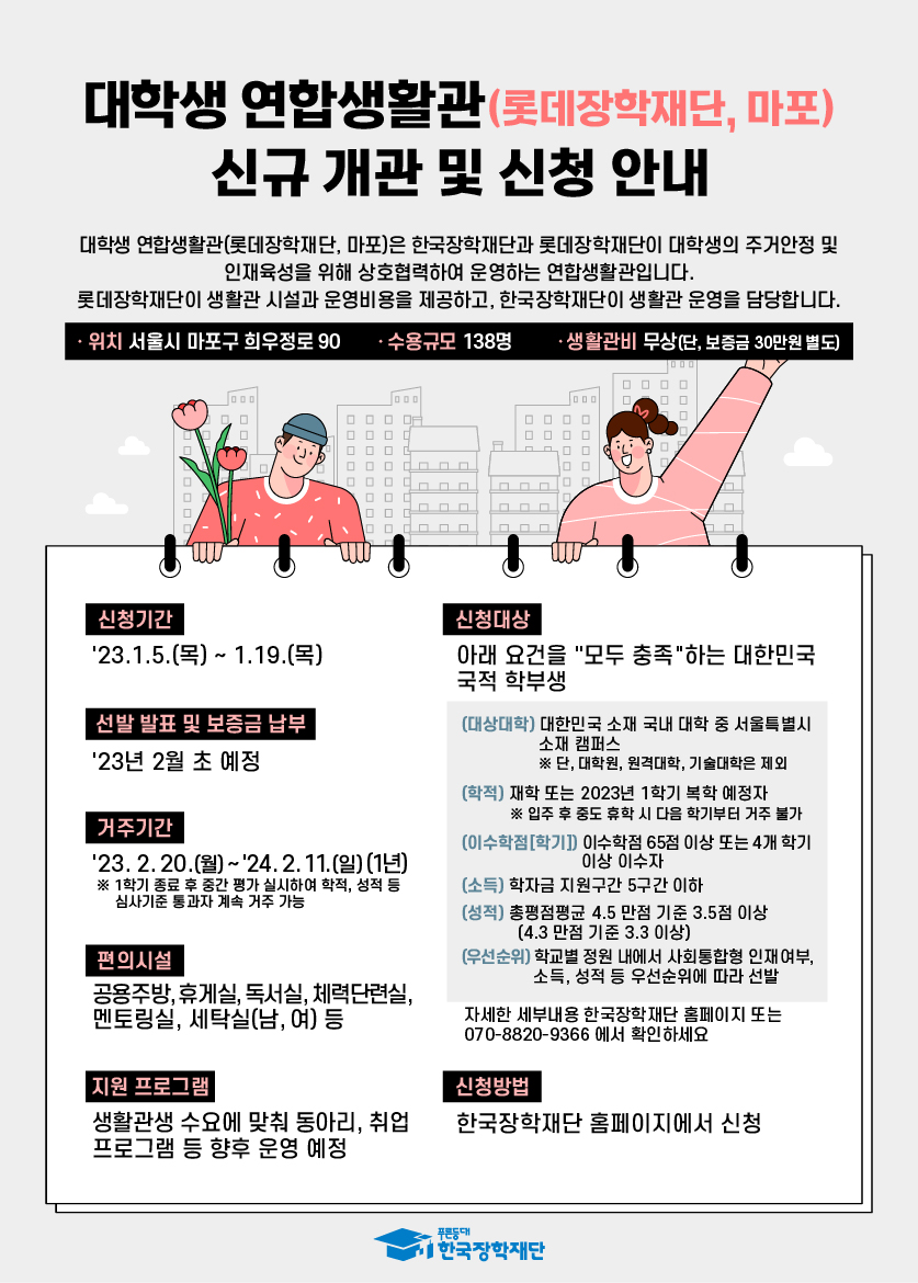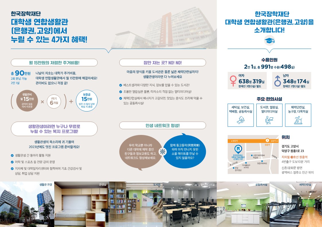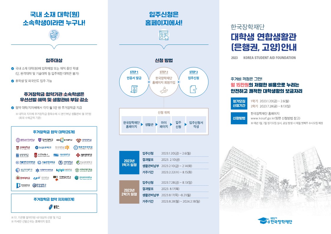 2023년 한국장학재단 대학생 연합생활관 신규 입주생 모집 안내