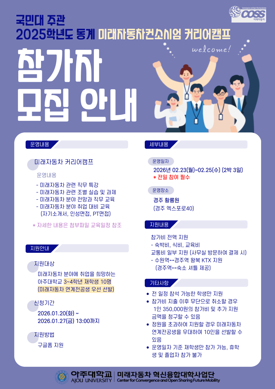 [비교과] 2025학년도 동계 미래자동차컨소시엄 커리어캠프 신청 안내(~1/27)