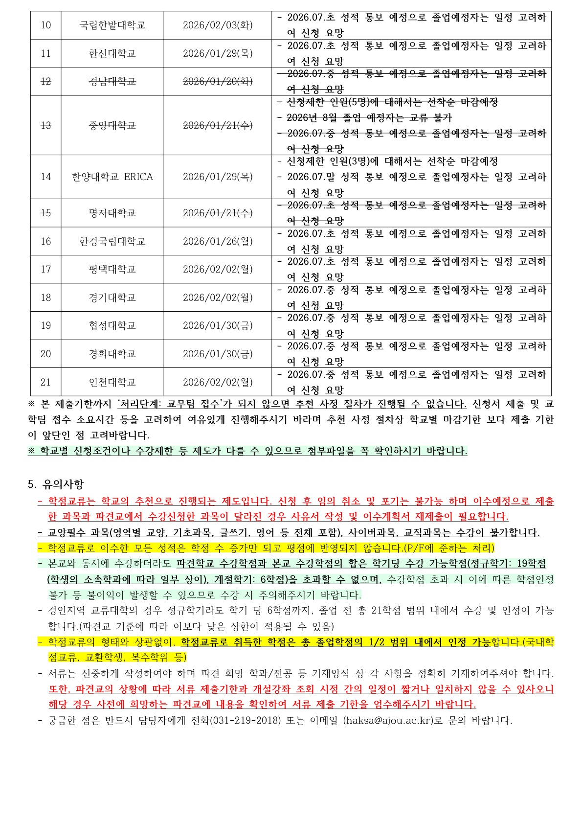 [학사] [학부/학사과정] (26.01.23.) 2026-1학기 국내대학 학점교류 신청 안내