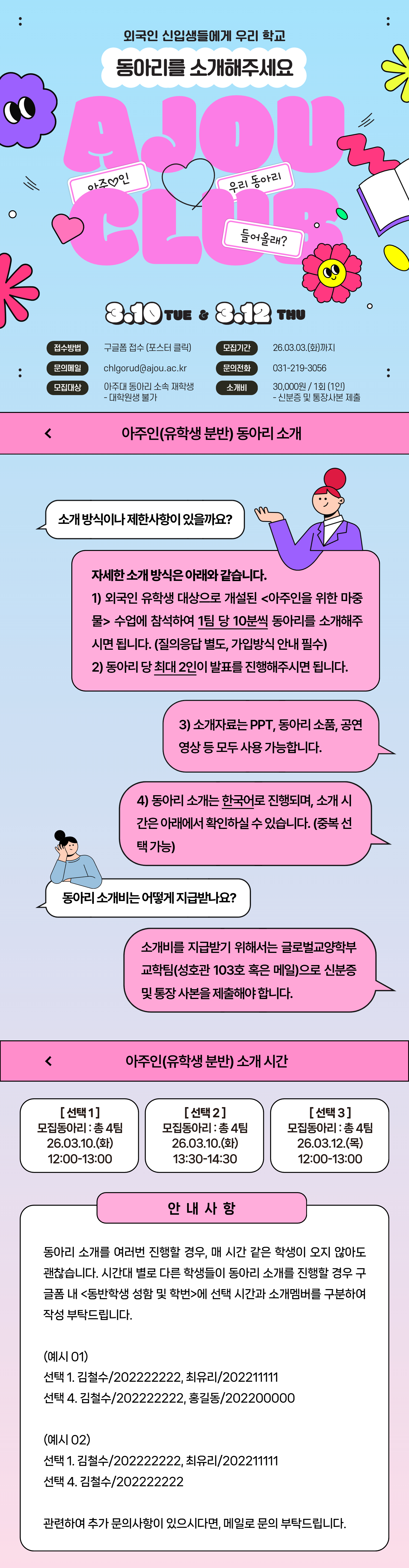 [학사] [글로벌교양학부] 26.1학기 <아주인을 위한 마중물> 동아리 소개 모집