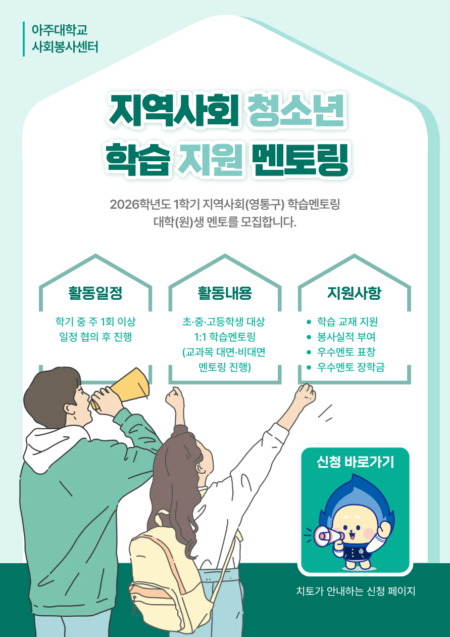 [비교과] [사회봉사센터] 2026학년도 1학기 지역사회(영통구) 청소년 학습멘토 모집