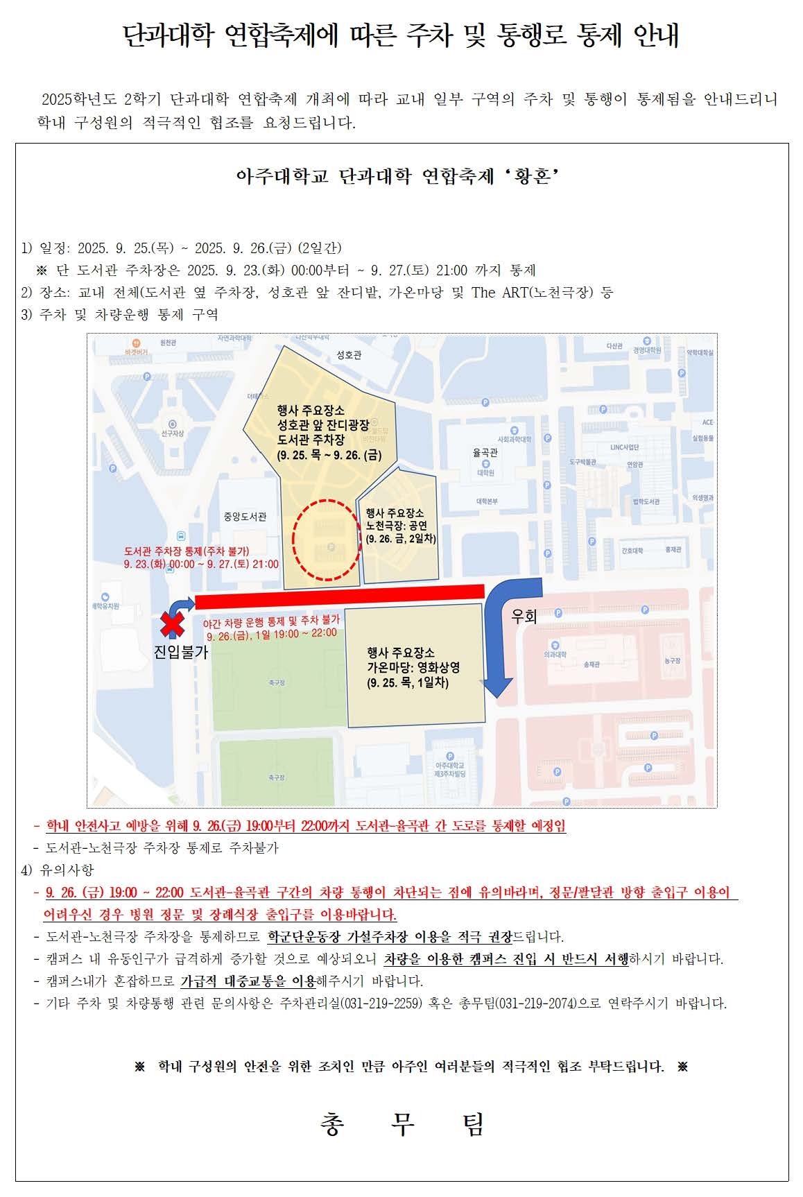 [행사] [총무팀] 09.25.(목)~09.26.(금) 주차, 통행로, 교통 통제 관련 안내