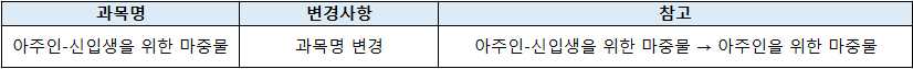 ※ 교육과정 변경사항과는 별개로 교과목 이수 시 본인 학번의 요람 기준으로 학수구분이 적용되오니, 반드시 본인