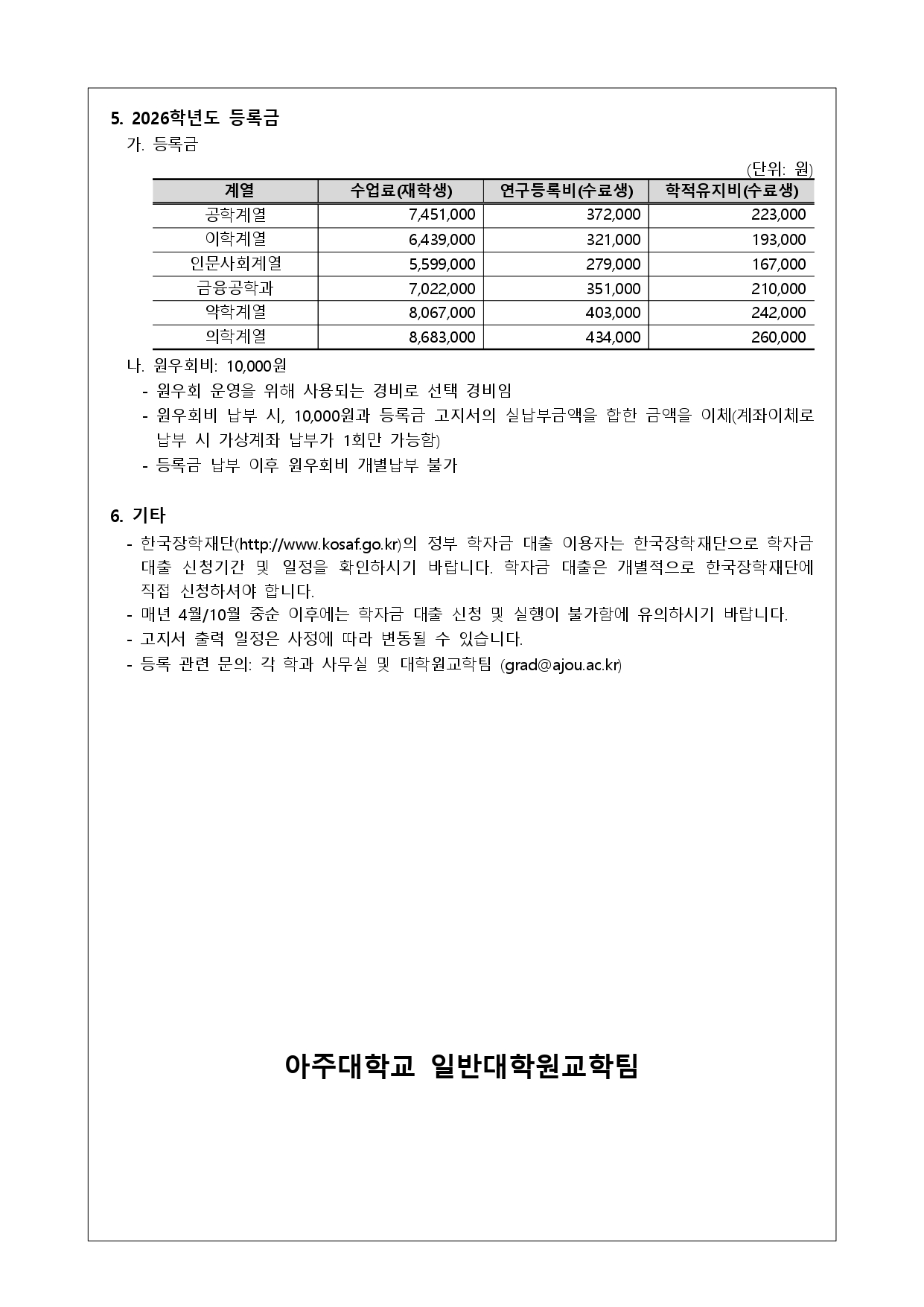 [기타] [자연대/대학원] 2026-1학기 일반대학원 재학생 등록 안내
