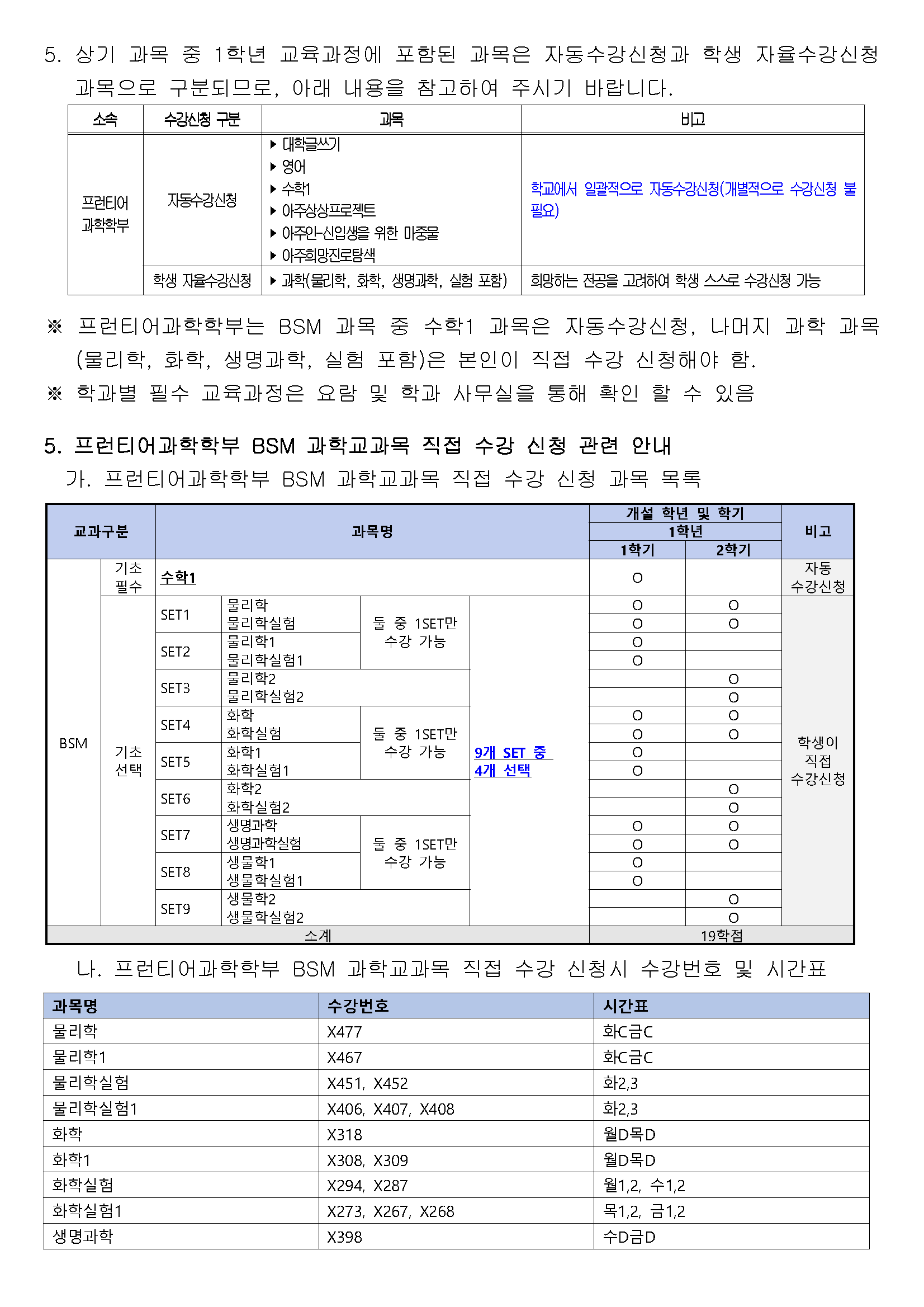 [공지] [학부/자연대] 2026학년도 프런티어과학학부 신입생 대상 수강신청 안내