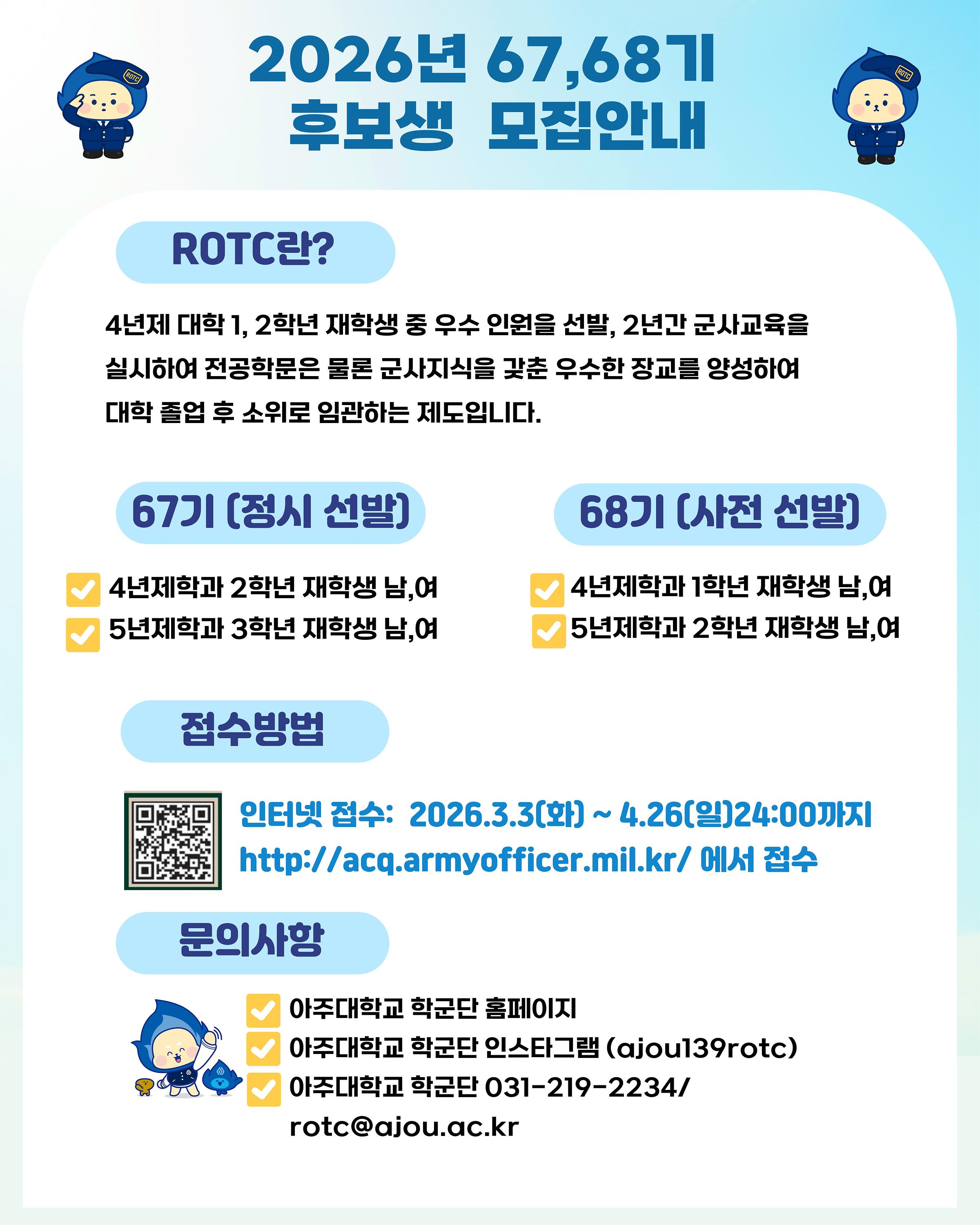 2026년 학군사관 67·68기 후보생 모집을 실시합니다.