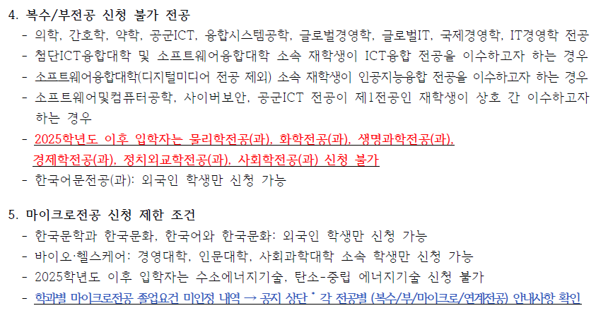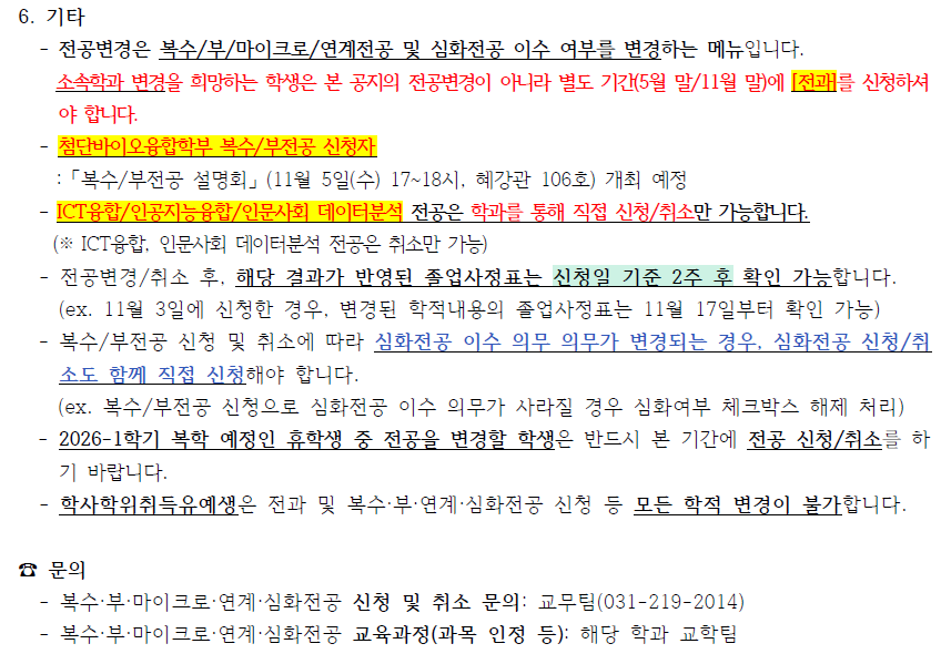 * 각 전공별 (복수/부/마이크로/연계전공) 안내사항: 클릭