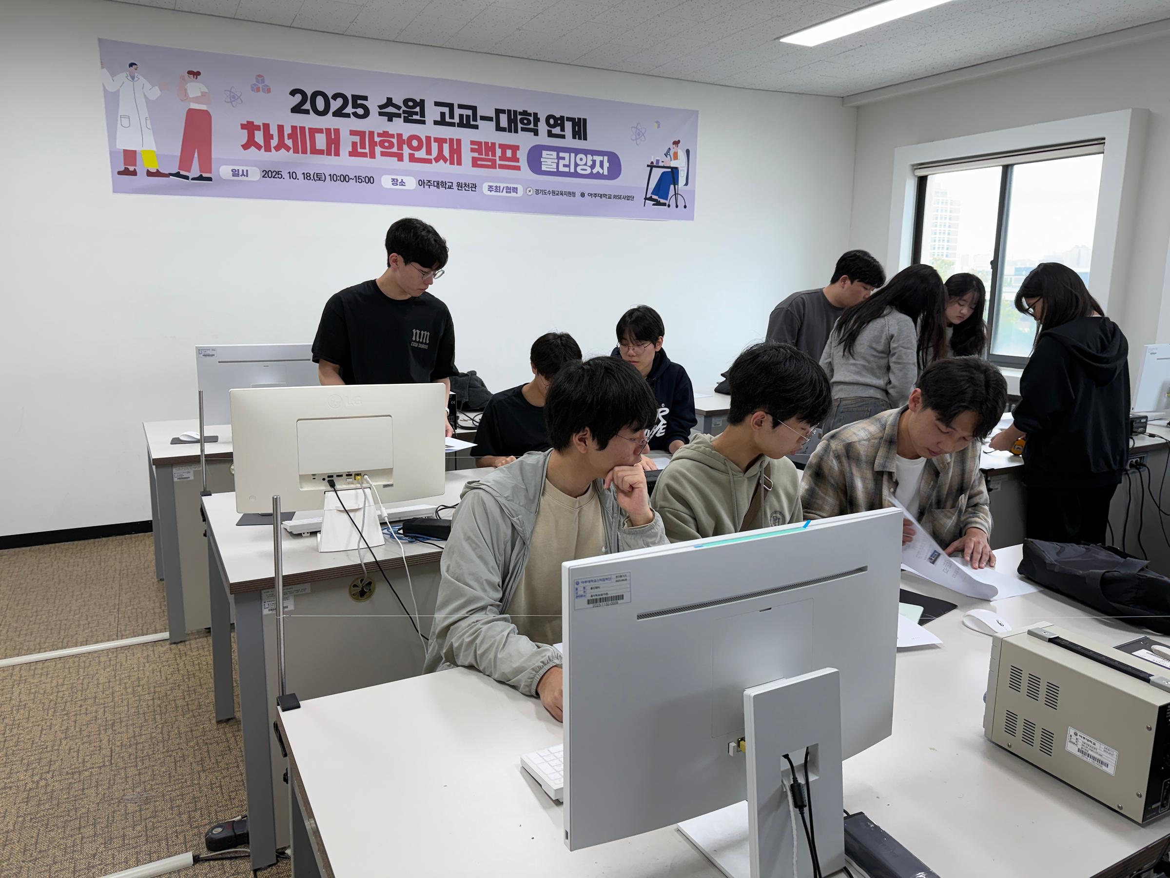 아주대학교 물리학과에서는 10월 18일 토요일 원천관에서 수원 과학중점학교와 연계한 ‘물리양자 캠프’를 개최했다.
