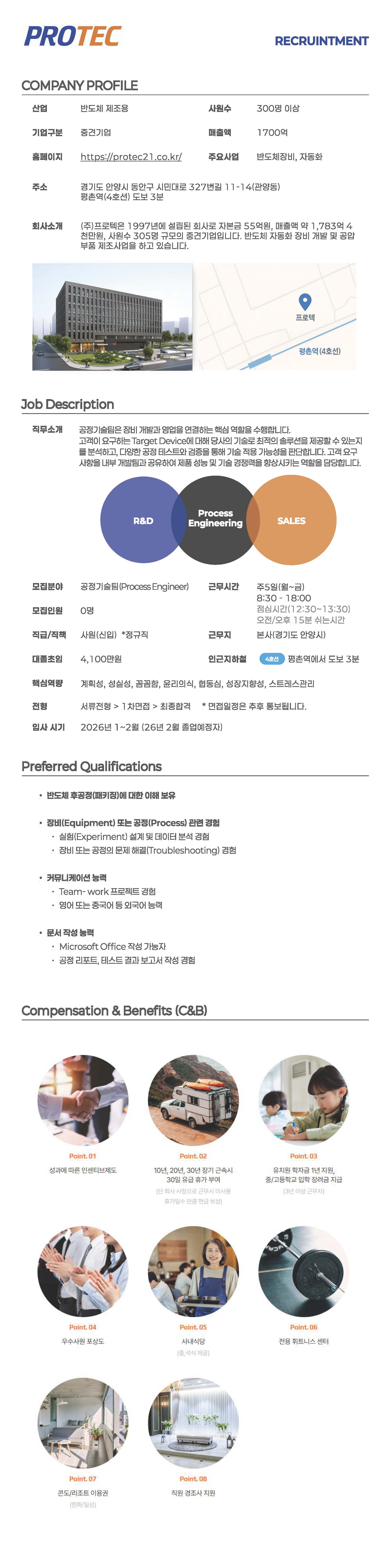 [취업] (주)PROTEC 정규직 채용 공고(~11/28)