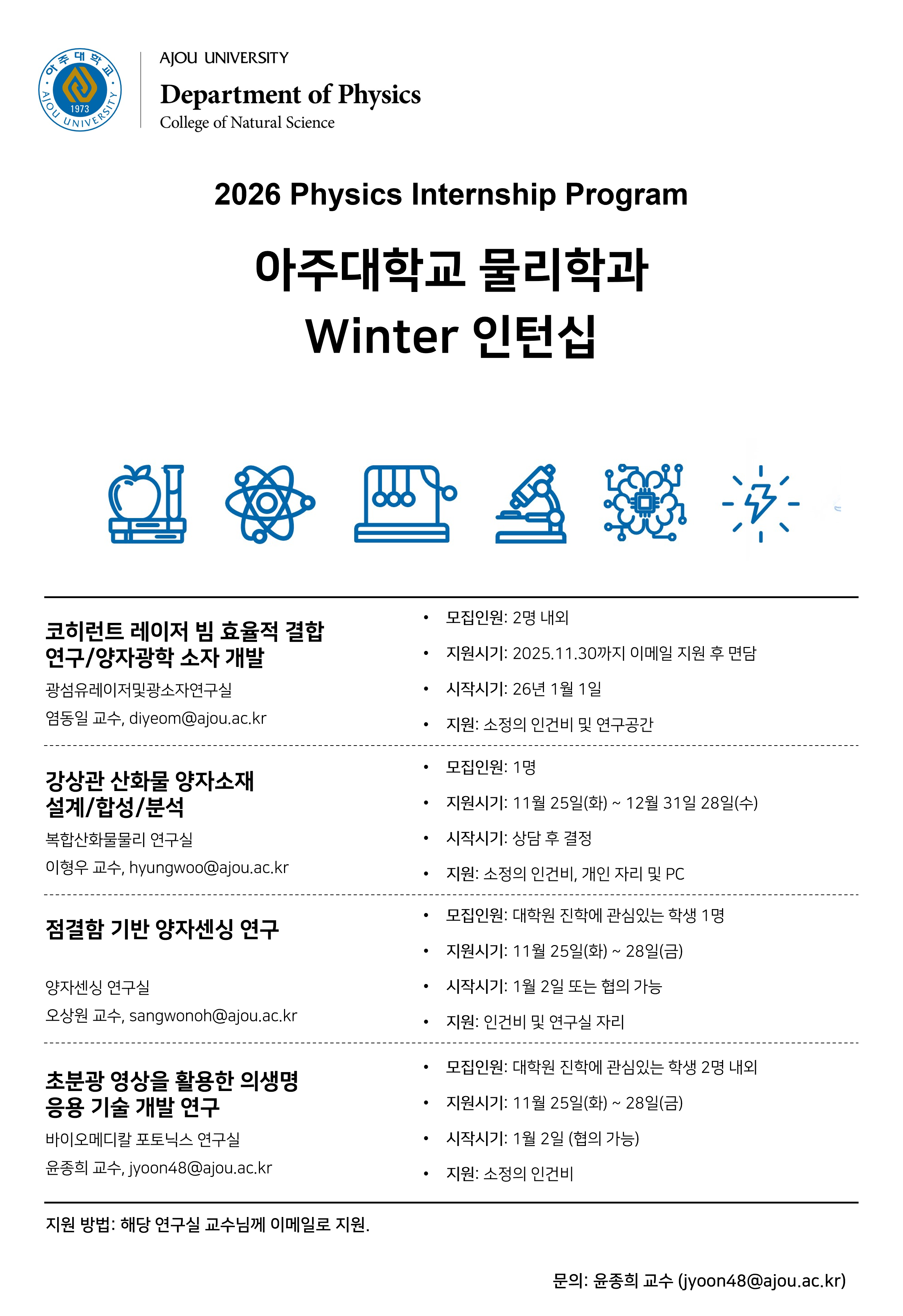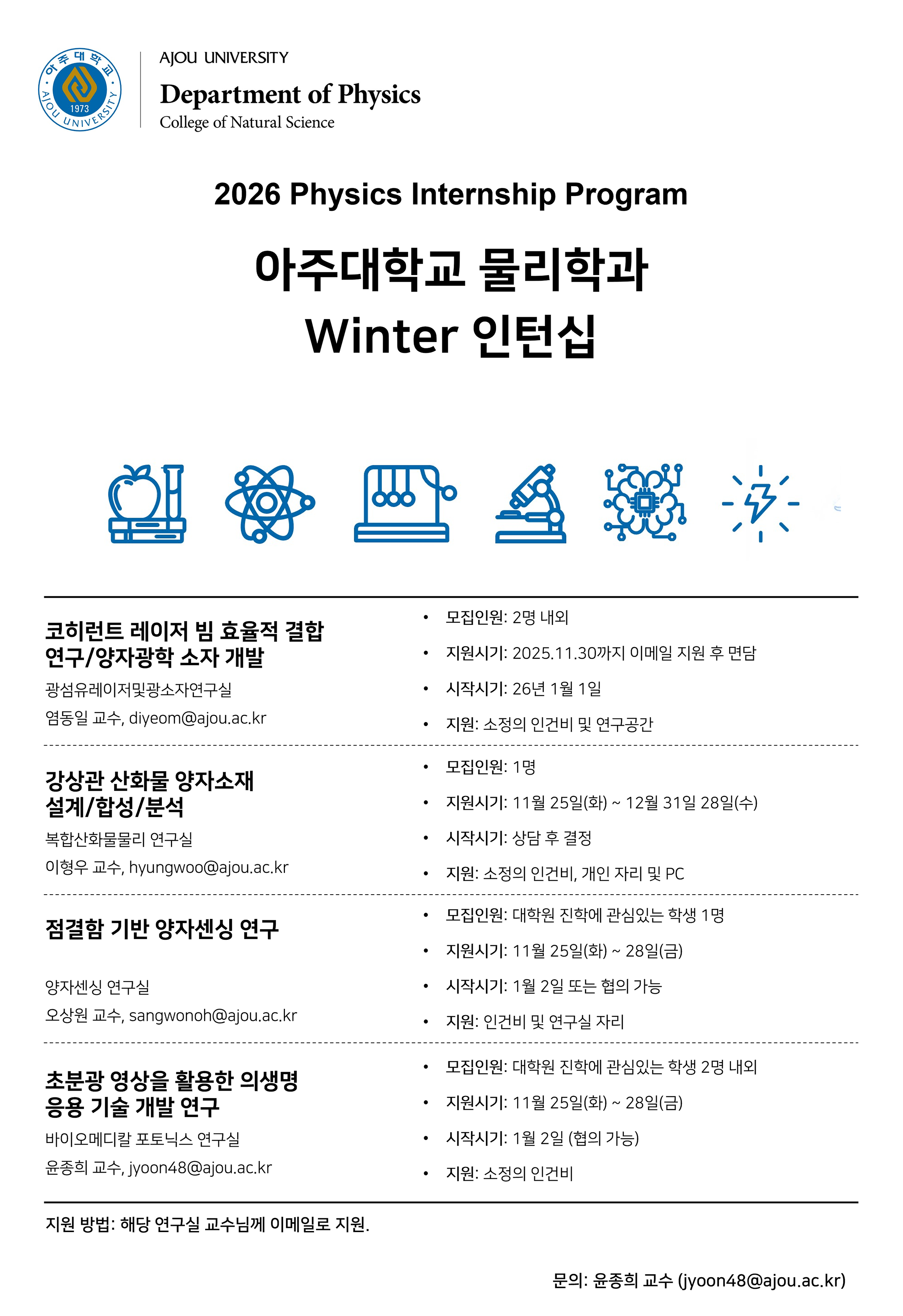 [취업] 2026년도 아주대학교 물리학과 WINTER 인턴십 모집 공고